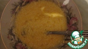 • Взбиваем в тарелке 2 яйца, добавляем туда где-то 4 ст. л. тертого сыра по вкусу, ещё раз перемешиваем.