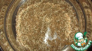 • В другой посуде смешиваем панировочные сухари, зелень сушеную, у меня понемногу петрушки, укропа и базилика, чеснок, соль перец и где-то 2 ст. л. тертого сыра, по желанию добавляйте, сколько хотите. Всё перемешиваем.