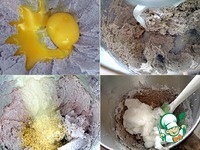 Теперь по 2 добавляем желтки и каждый раз хорошо взбиваем, дальше очередь семечек ванили и миндаля, хорошо перемешиваем.