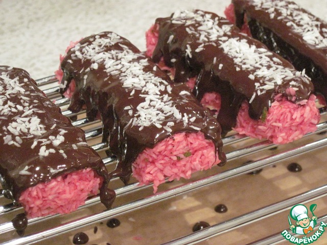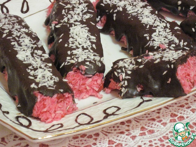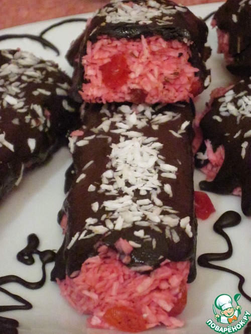 Рецепт «Вишнево-кокосовые конфеты-батончики в шоколаде»: