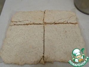 • Противень застелить бумагой для выпечки и разровнять тесто в слой 2-3 см. Выпекать при t=160 25 - 30 мин. Слой должен быть твердый. Вынимаем и остужаем.
