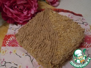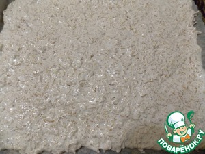 Противень застелить бумагой для выпечки и разровнять тесто в слой 2-3 см. Выпекать при t=160 25 - 30 мин. Слой должен быть твердый. Вынимаем и остужаем.