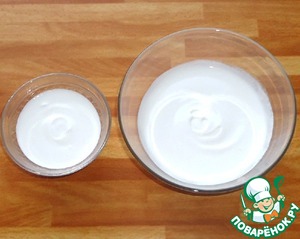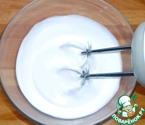 Яичные белки комнатной температуры с сахарной пудрой взбить в крепкую пену.