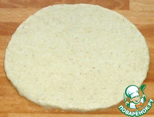Стол посыпать оставшимся измельчённым миндалём и раскатать тесто в пласт толщиной ~1 см.
