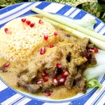 Выложить в сковороду мясо и оставшееся кокосовое молоко. Тушить на слабом огне до до загустения соуса и размягчения мяса, периодически помешивая (около 50 мин).