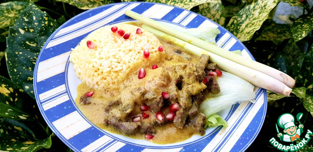 Подавать ренданг нужно на листьях салата горячим, лучше всего с отварным рисом, приправленным шафраном.