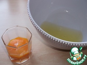 Ввести к маслу сахар и желтки - всё взбить. -