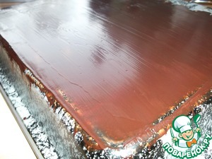 Выливаем оставшийся растопленный шоколад на пирог, разравниваем шпателем (ложкой, ножом)