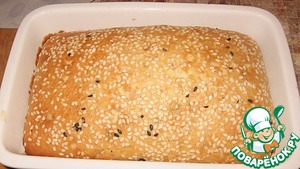 Выложить в форму. Сверху посыпать кунжутом. -