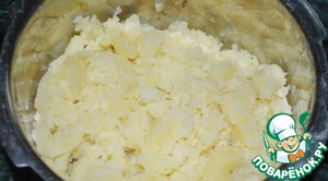 Отварить картофель. Размять его достаточно крупными кусками. Это не должно быть пюре.
