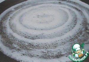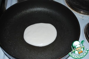 Процесс распределения теста по сковороде я сфотографировать не смогла, т. к. орудовать ложкой, придерживать сковородку и одновременно фотографировать несколько затруднительно. Но результат я запечатлела.