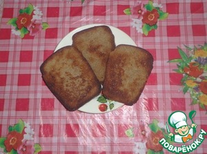 Обжариваем ломтики хлеба на растительном масле с двух сторон.