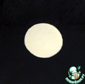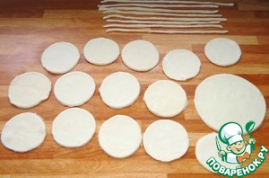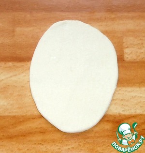 Круги из теста меньшим диаметром чуть раскатать в виде овала.
