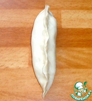 Соединить и защипнуть края теста. Получился пирожок. Таким образом сформировать остальные пирожки.