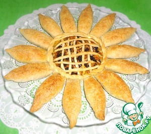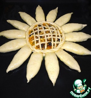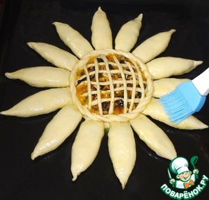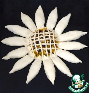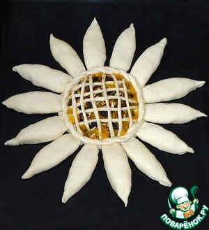 Пирожки-слойки выложить на противень в виде лепестков подсолнуха.
