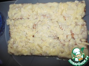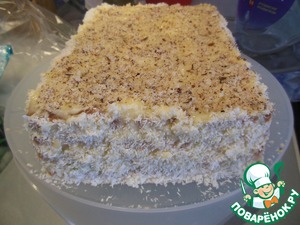 5. Следующий слой так же ложится сверху на первый слой. Прослойка любая, по вашему усмотрению. У меня был резаный миндальный орех.
