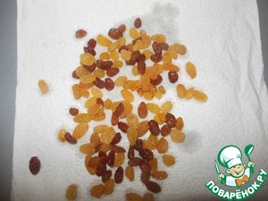 6. Третий слой также обмакиваете в креме (пудинг) и посыпаете изюмом. Естественно, Изюм предварительно промываем в горячей воде и высушиваем бумажным полотенцем.