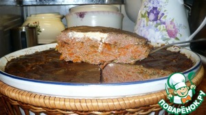 Чередуем с жареными луком и морковью. У меня получилось примерно 6 слоев печени.