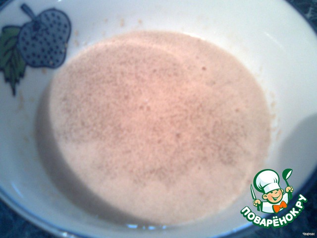 Смешать дрожжи и сахар с 4-мя столовыми ложками воды