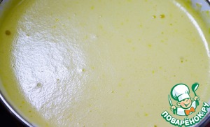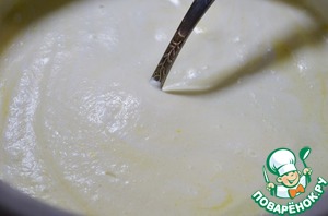 Молоко нагреть и влить тонкой струйкой в желтки. Вернуть на огонь, постоянно помешивая до загустения. Не кипятить. Затем охладить.