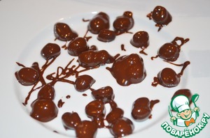 Приготовим кофейные зёрна в шоколаде. Просто растопим 20-30 г. шоколада, опустим туда зёрна, достанем аккуратно и уберём в морозилку.