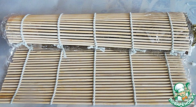 для этого бамбуковый коврик (макису) нужно прикрыть пищевой плёнкой.