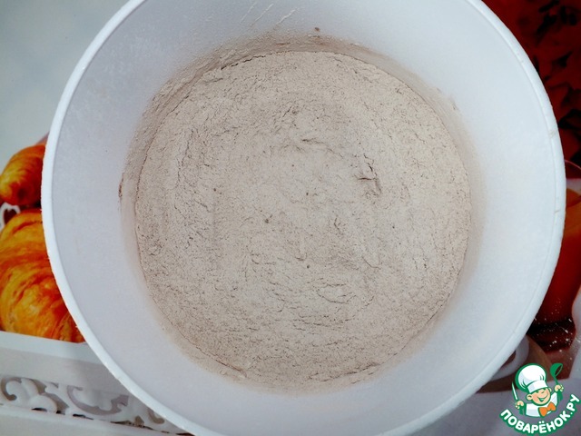 Смешать в чаше просеянную муку, какао, сахарную пудру, разрыхлитель и соль