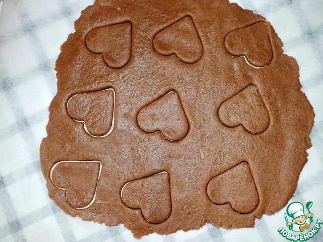 По истечении времени тесто разделить на несколько частей, каждую раскатать скалкой и вырезать формочкой печенье.