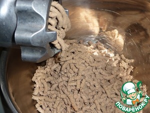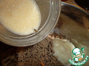 В печень добавить отварную крупу манную, яйцо взбить и добавить к массе.