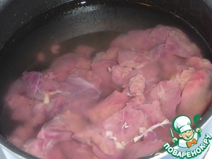 Печень промыть, отварить в подсоленной воде 10 мин.
