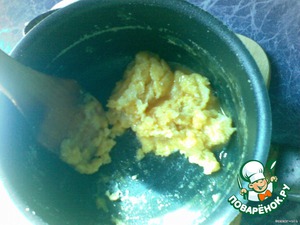 • Снять с огня и, продолжая размешивать, по одному добавить желтки.