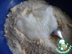 Белки слегка взбить и добавить в орехово-мучную смесь, добавить воду.