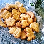 Тесто раскатать в пласт толщиной 1 см., нарезать формочками, сложить на противень, застеленный пекарской бумагой.