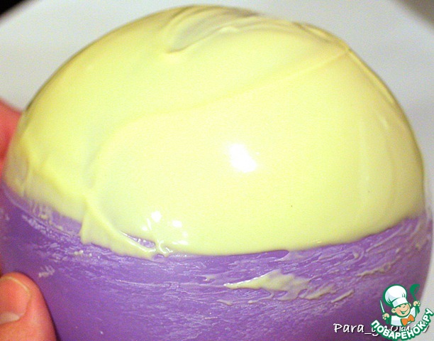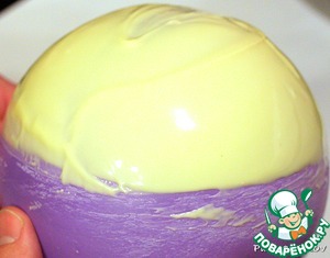 Укрепите на основании шарик с шоколадной сферой. Снова отправьте в морозилку на несколько минут. После застывания лопните шарик и удалите его.