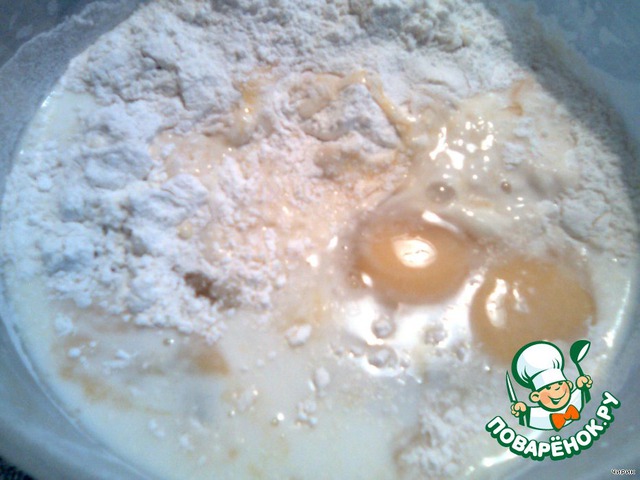 • В небольшую миску разбить яйца, влить молоко (воду), добавить соль, всыпать муку и замесить не очень крутое тесто.