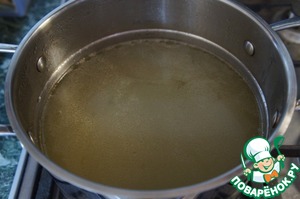 В кипящий бульон опустить картофель, довести до кипения и варить 5 минут,