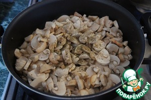 Всыпать грибы, добавить майоран и обжарить, помешивая, около 3-4 минут. Переложить грибы на тарелку.