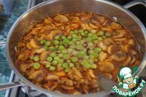 Рецепт «Суп из свинины с шампиньонами и горошком»: