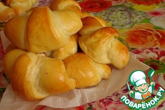 12. Теперь формируем плюшки. Возьмите одну часть (из 10-ти), с одной стороны защипываем края, а верхнюю часть плюшки выворачиваем как розу. Наша плюшка готова!))