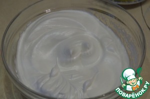 Белки взбить в крепкую пену с оставшимся сахаром.
