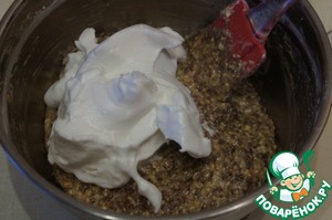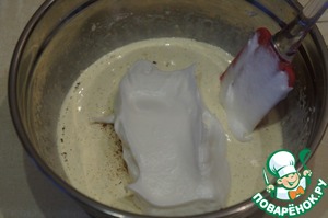И, наконец, выложить в массу оставшиеся белки и аккуратно вмешать их кулинарной лопаткой методом складывания.