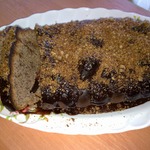 Форму смазать жиром и обсыпать мукой. Выложить тесто, разровнять. Выпекать при 170-180*С до сухой зубочистки. Печется кекс довольно долго. Готовый кекс вынуть из духовки, немного остудить в форме, затем выложить на решетку. Вот примерно так!