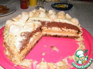 Собираем торт: шоколадный корж, крем, безе, белый корж, крем, безе, шоколадный корж