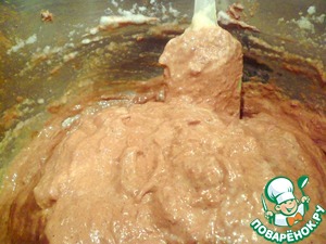 • Взбить белки в крепкую пену. Разделить тесто в две емкости, в одну добавить ванилин и половину взбитых белков, в другую какао и оставшуюся половину белков. Оба теста аккуратно перемешать.