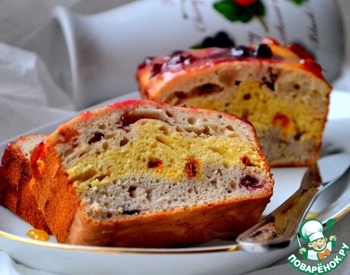 Главная изюминка бисквита - три вкуса, три цвета. Я использовала целую палитру джемов от марки «Махеевъ» - черная смородина, клюквенный и облепиховый.
