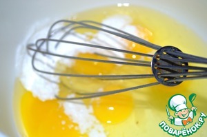 Взбиваем яйца с разрыхлителем. Добавляем постепенно муку.