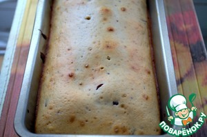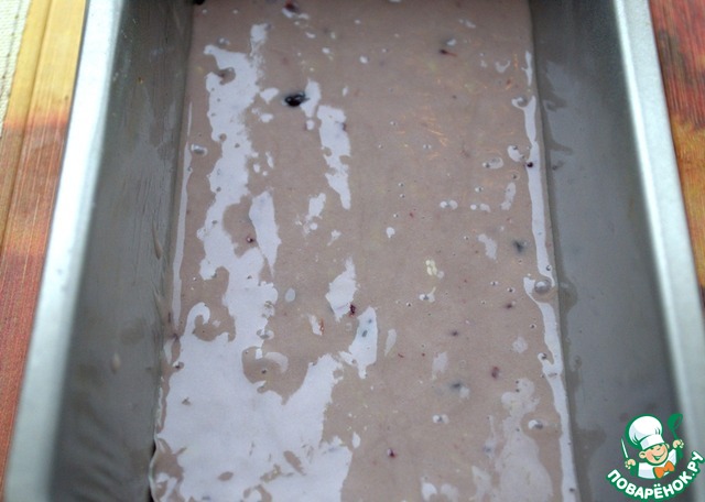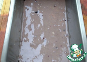 В смазанную форму кладем тесто с черной смородиной. Отправляем форму в горячую духовку примерно на 7 минут - до того момента, как первый слой схватится и станет плотным.