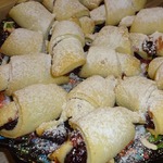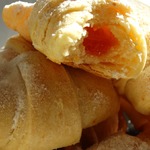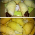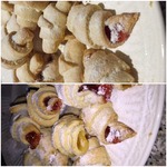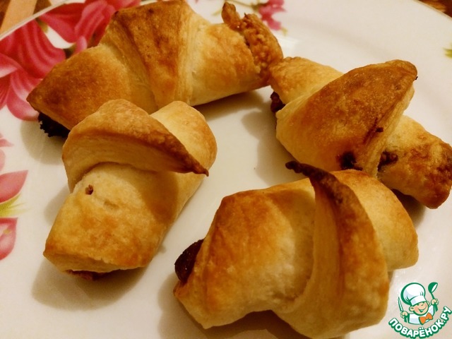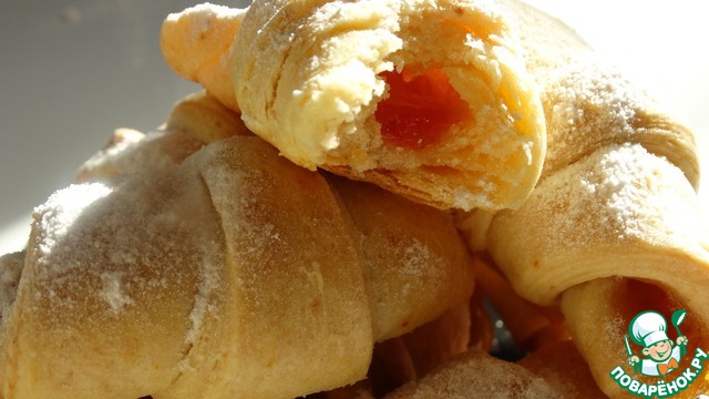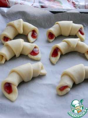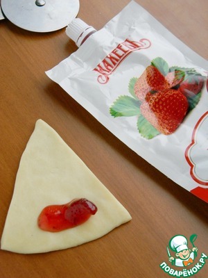 На большую сторону треугольника нанести джем, завернуть рогалик от большего края к меньшему.