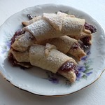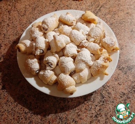Рогалики сделала с абрикосовым джемом, а сверху просто присыпала немного сахарком!!!