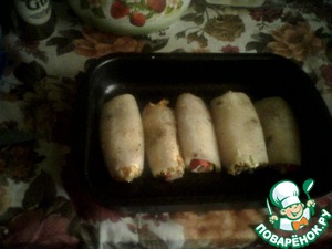 Рулетики перчим, выкладываем в смазанную маслом форму и отправляем в предварительно нагретую духовку на 15-20 минут.